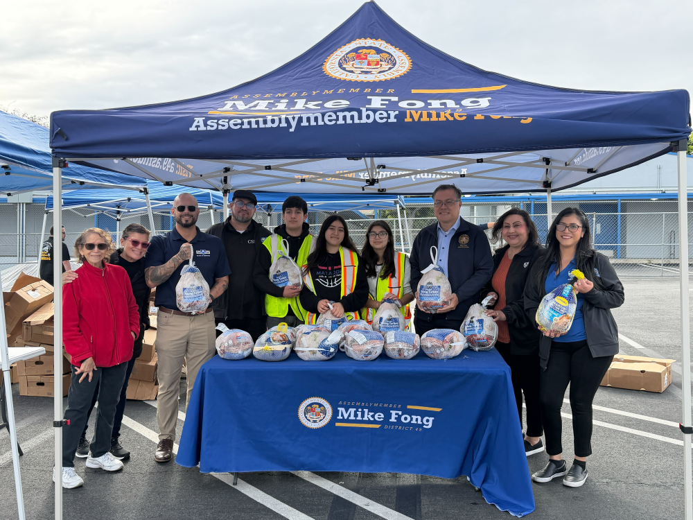 【阿罕布拉讯】11月22日(周六),加州众议员方树强(Mike Fong)在罗丝米德(Rosemead)举办年度“Operation Gobble 火鸡行动”,为第49选区内有需要的家庭提供节庆物资援助。活动当天,在加州学校员工协会(California School Employees Association)志工的协助下,超过140只火鸡成功发放给社区家庭。