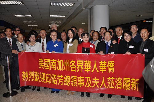 AACYF/洛杉矶(2010年12月18日) – 新任中国驻驻洛杉矶总领事邱绍芳12月18日下午与夫人韩来香抵达美国洛杉矶,在机场受到总领事馆同事及本地侨界代表三十多人欢迎。邱绍芳对踏足这个国际大都市有不同的感觉,并对自己的新职务感到责任重大。